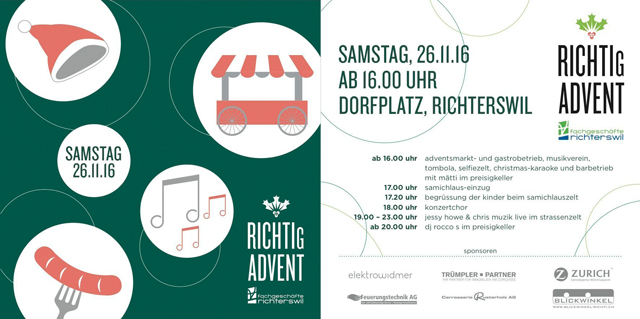 Wo: RICHTig Advent, Fachgeschäfte, Dorfplatz im Strassenzelt, 8805 Richterswil.